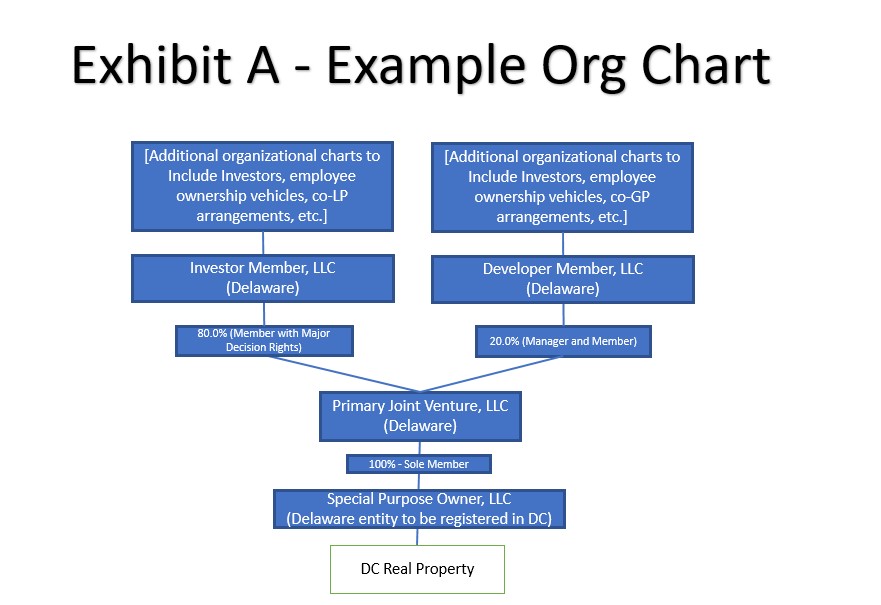 - Our assumption is that the filing entity (Special Purpose Owner, LLC) is required to report each owner meeting the requirement of D.C. Code § 29-102.01, which would include all applicable entities going up the chain of ownership. In the above example, this would mean that at least (i) Primary Joint Venture LLC, (ii) Developer Member and (iii) Investor Member would be considered a greater than 10% owner. In a typical deal structure, additional persons or entities on the Investor Member side (and possibly on the Developer Member side) would also meet this test.